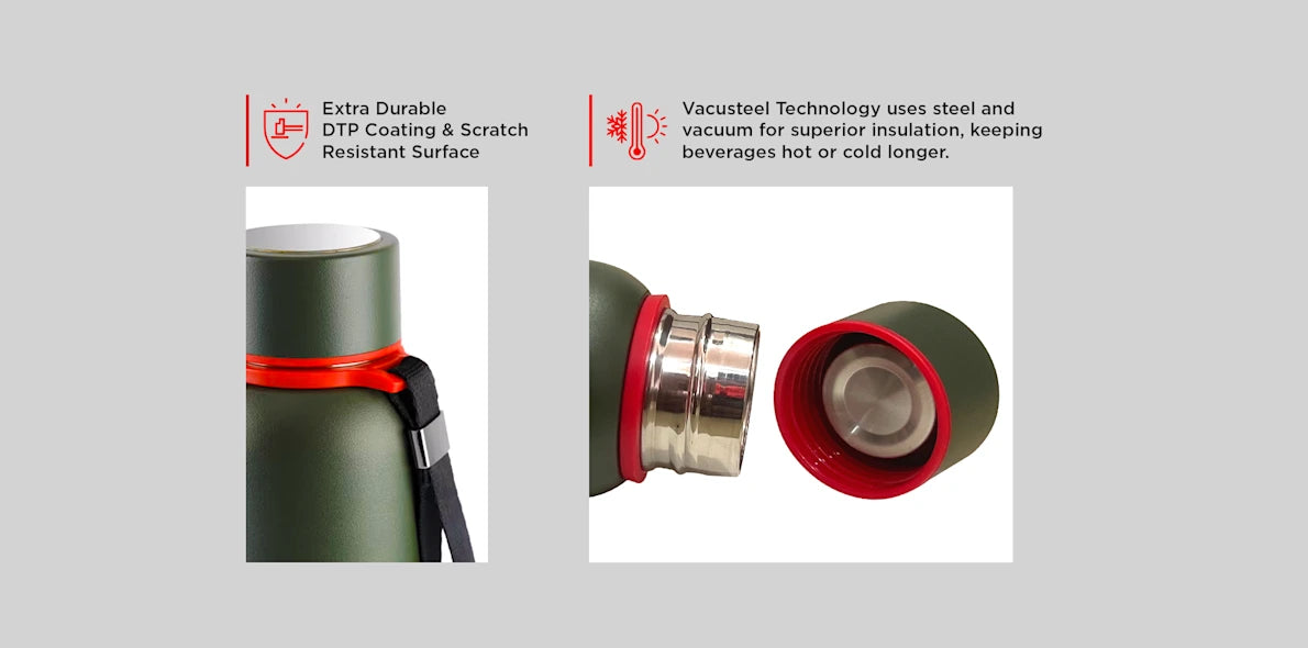 - Vacusteel technology with a copper-coated interior ensures prolonged temperature retention.