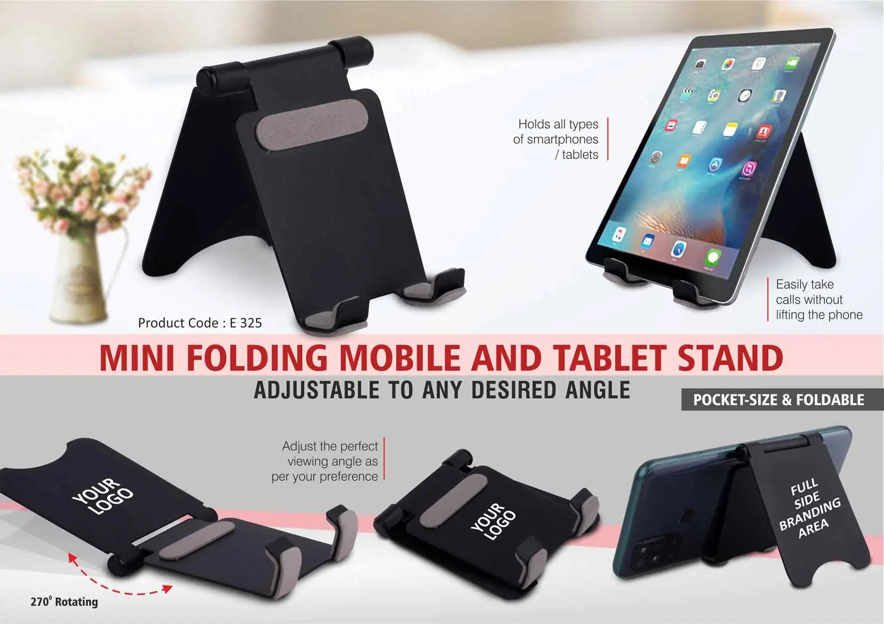 Mini folding mobile and tablet stand | Adjustable to any desired angle